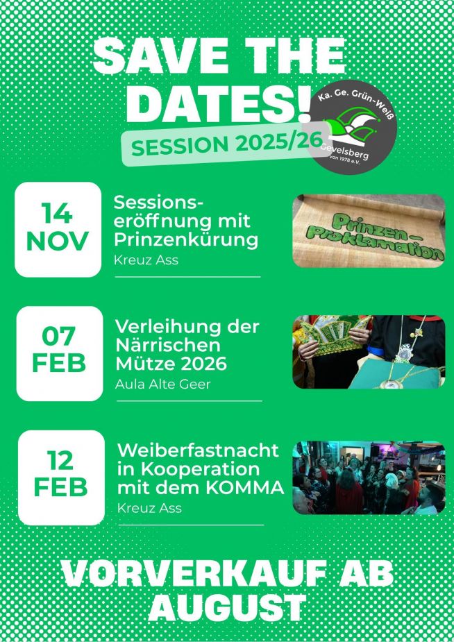 Ab dem 14.08.2025 startet unser VVK für alle drei Veranstaltungen.